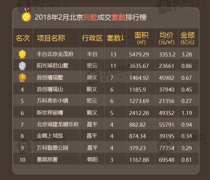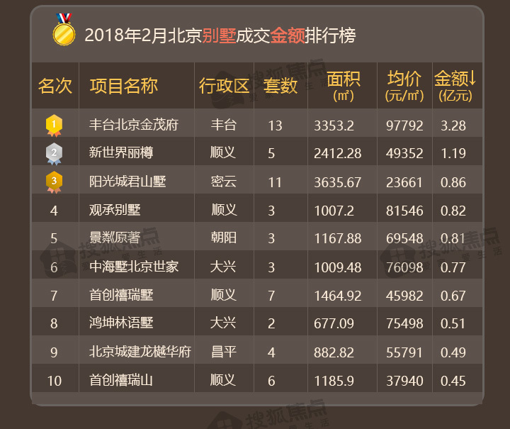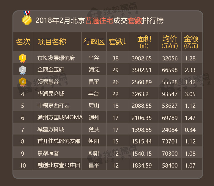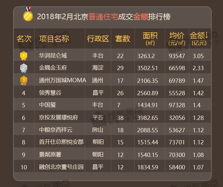 4.【排行】2月北京楼市成交量、成交金额排行榜速递