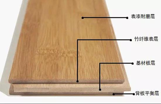 竹地板和其他木质复合地板一样也是有结构的,大致我们可以分为四层,(三氧化二铝耐磨层,高硬度化合物,熔点很高,防火制品用的非常多)表面耐磨层、原竹表层、基材层、平衡层组成。前两层你很好理解哈,基材层就是原来竹子或者木材打碎以高温压制而来,并且低碳环保,这和刨花板很像人工合成的,较底面一层是防水耐腐蚀层,有效避水泥地面潮湿腐蚀地板。