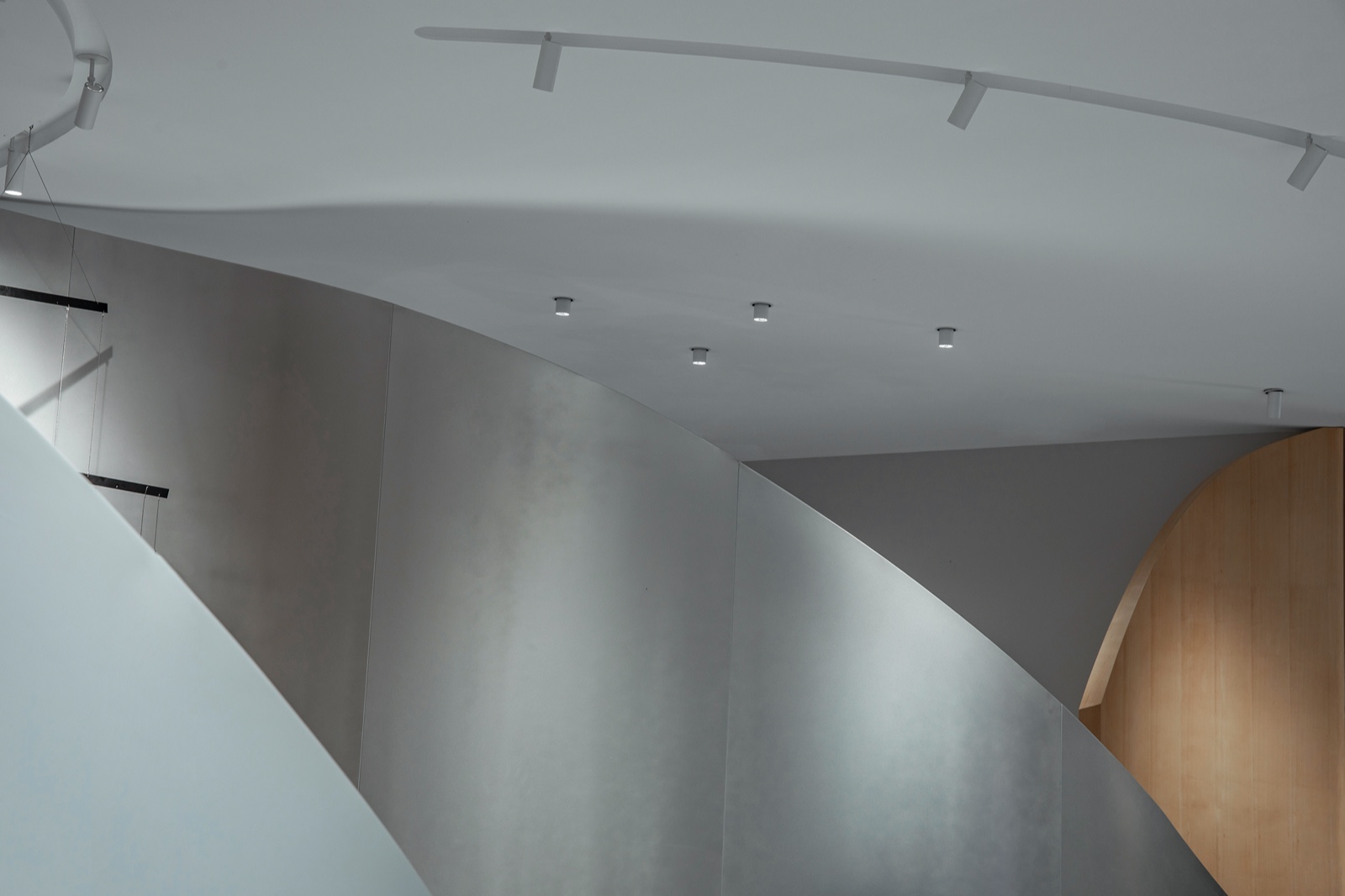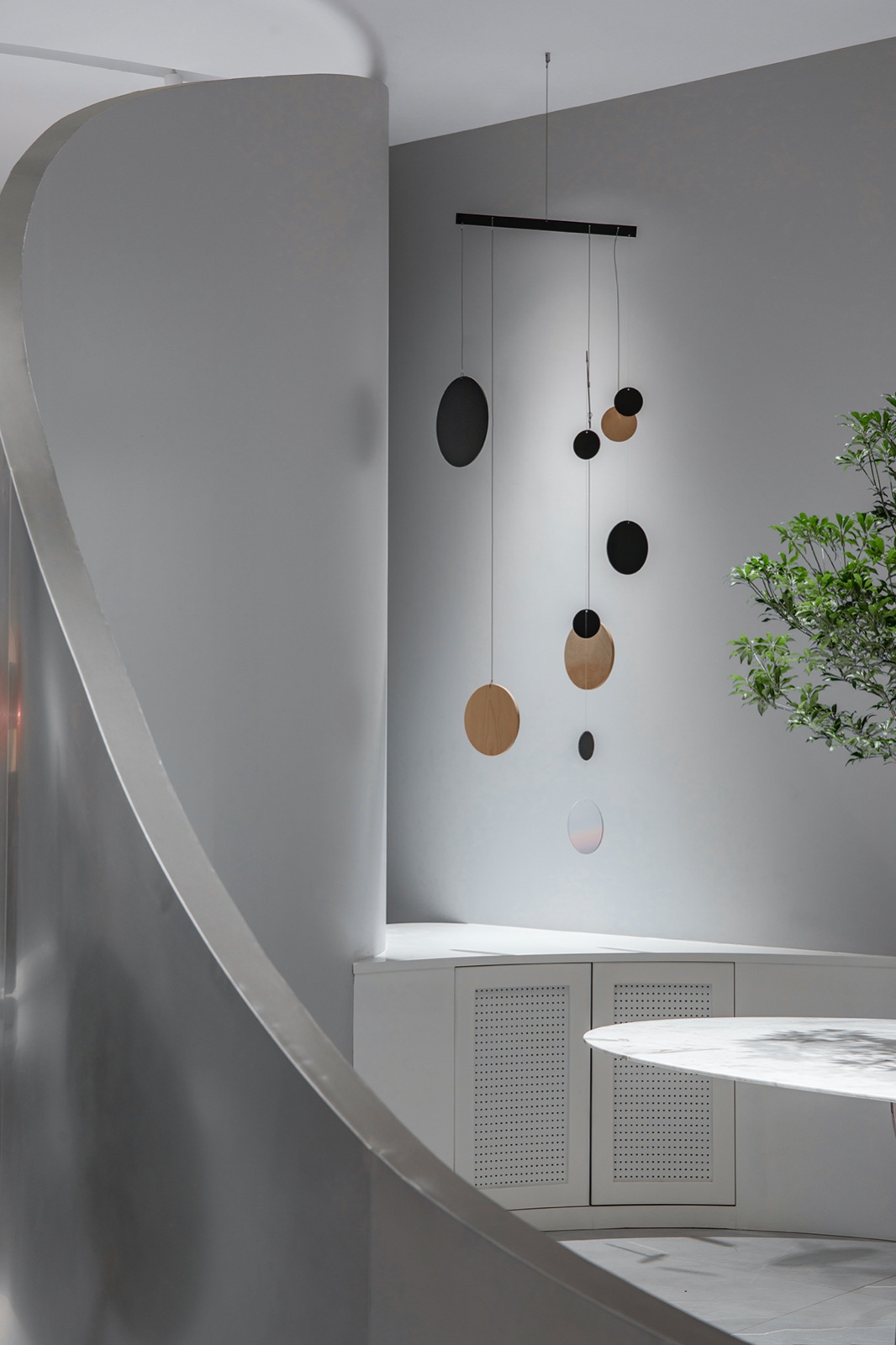 在无明确指向的曲线构建中,空间是一个能翻出无数面的奇妙场域。AYZ STUDI O将自然和音律中“五”的概念提取演绎,空间通过曲线游离出传统的物质性叙事。声音凝结而成为曲面实体,而实体又随着声音和情绪不断流淌变幻,它们融合成一体,在空间里兜兜转转,你想要寻找答案,又不知答案属于哪道谜题。