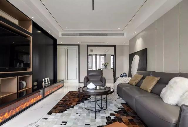 纯灰色的皮沙发给人的感觉太冷,换成暖灰色的,既有着简约的氛围,又能有着温馨的质感,更加有家的味道。