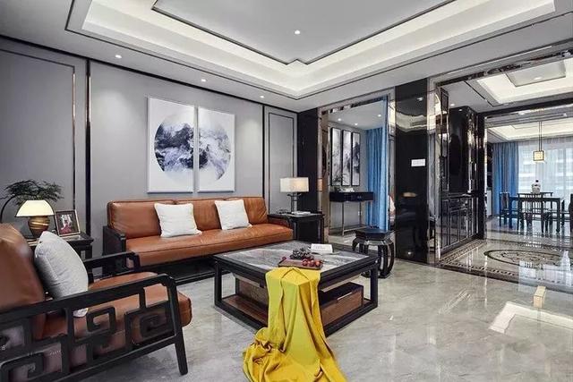 黑色皮沙发在现代风格中比较常见,通过时尚优雅的黑白配,会让客厅显得更加高档。