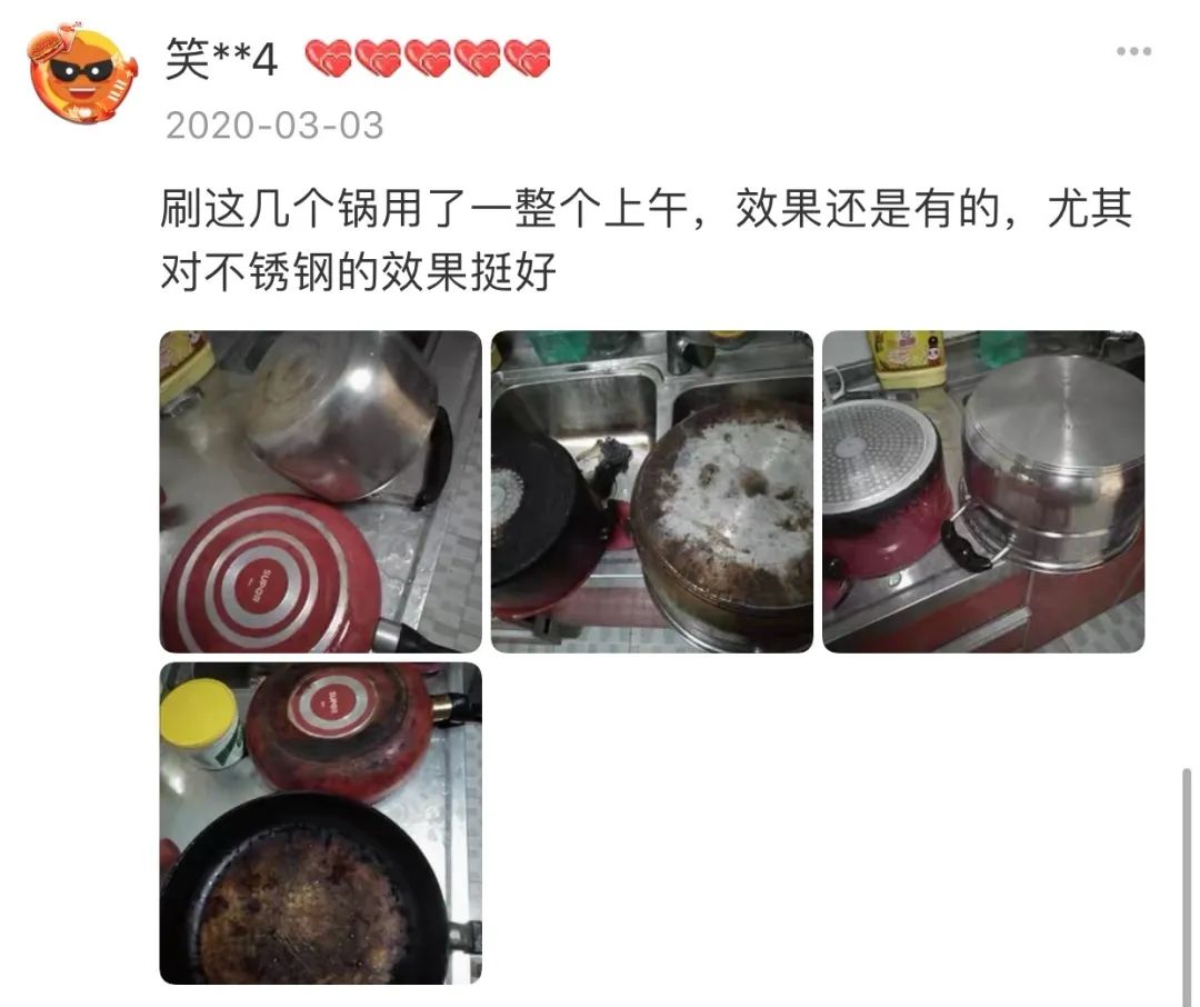 洗锅洗碗特别刮油且不粘油,有时候根本不用洗洁精,用完拿水一冲就干净了。