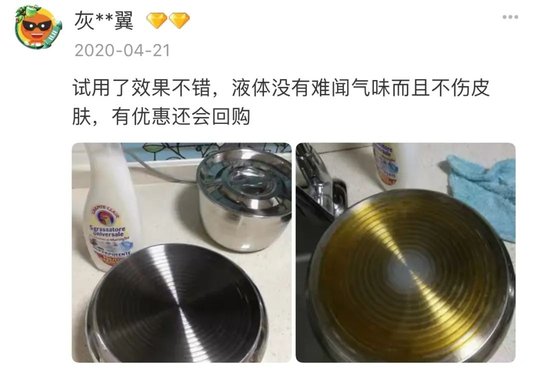 值得注意的是,很贵的陈年黑垢脏锅具千万别用力过猛,膏体本身有磨砂效果,又贵又光滑的锅劝你温和操作别划伤表面。