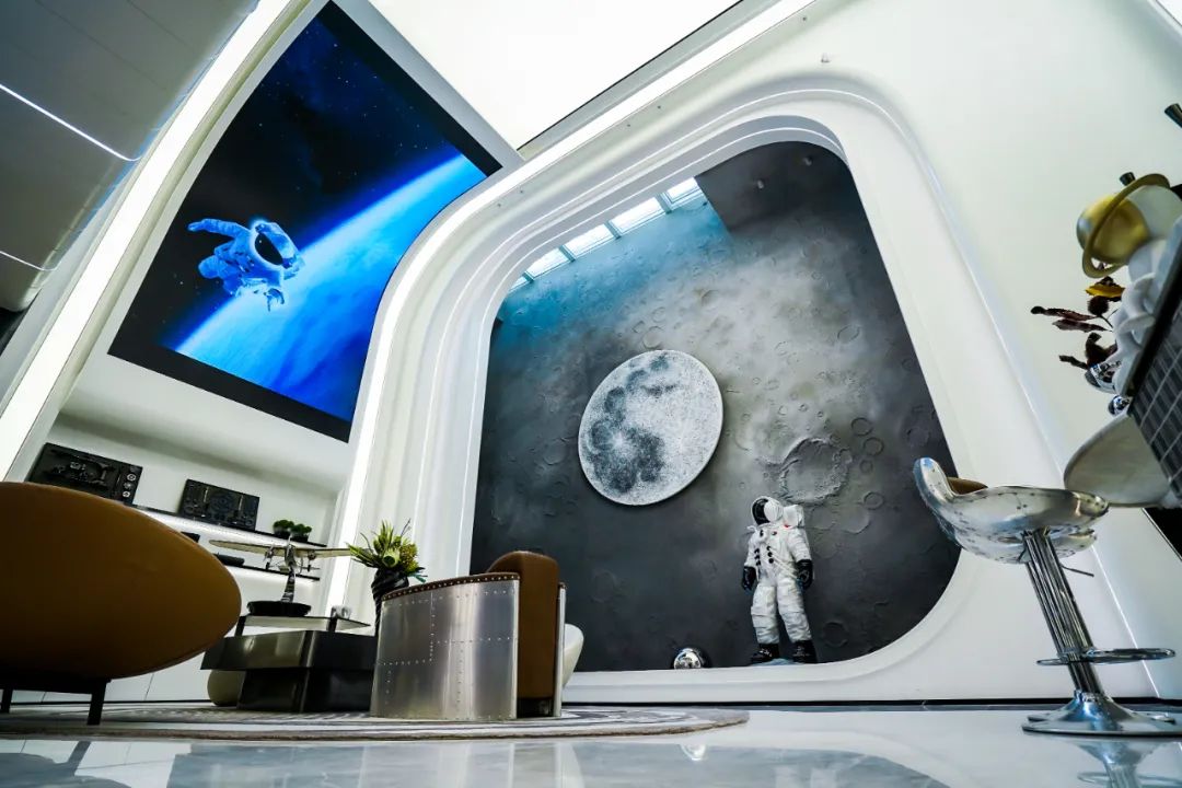 地下室是别墅的灵魂,地下一层层高3.2m,地下二层层高3.3m,可以让你在家中打造整整6.5m层高的主题空间。抬头就是3D裸眼屏的太空主题仓,够不够酷?