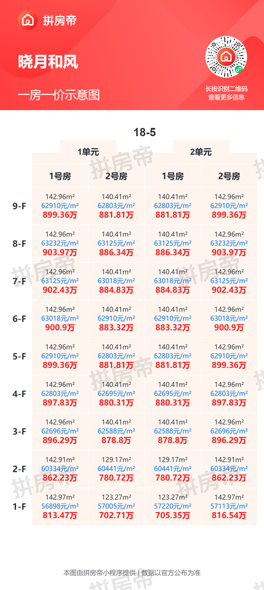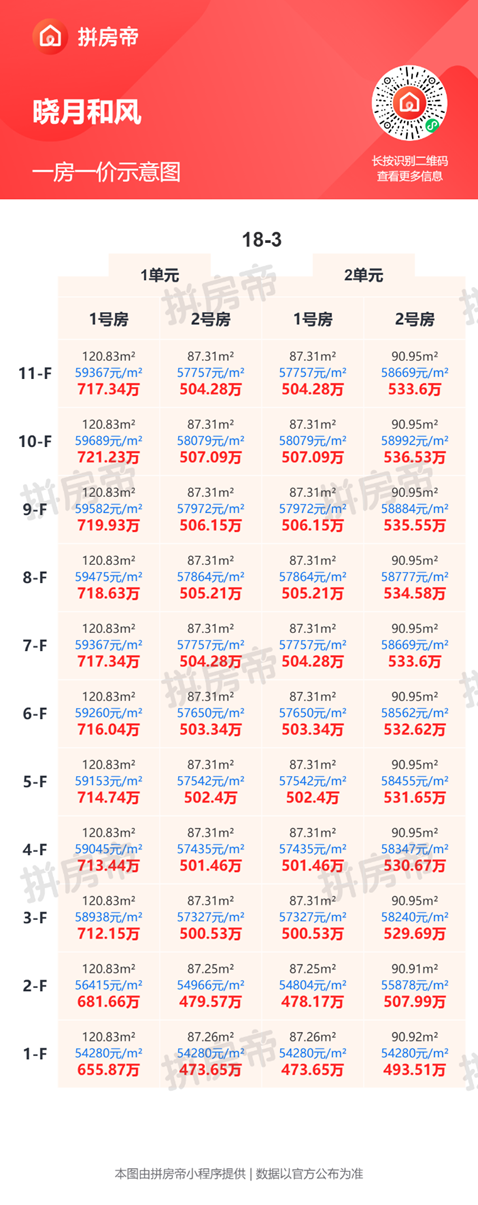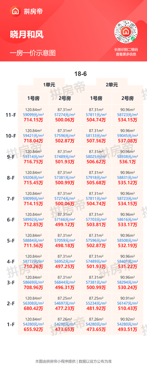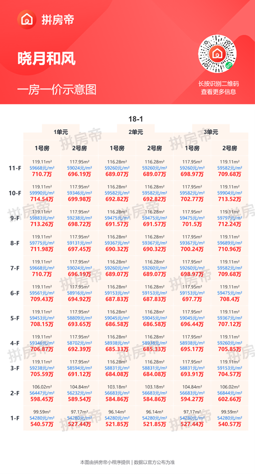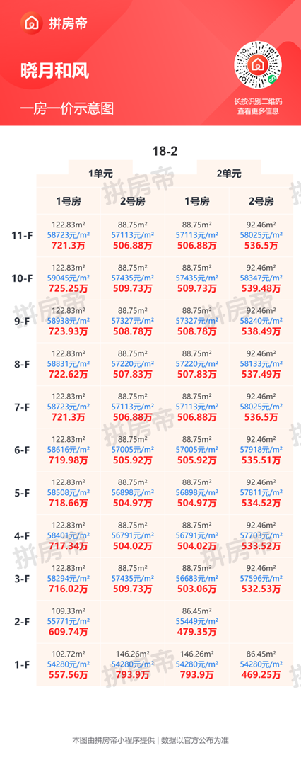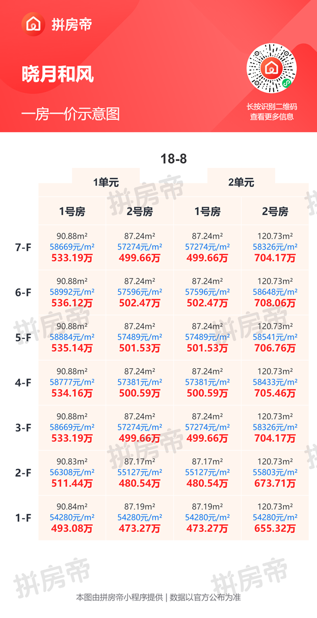 晓月和风一房一价表,最低54280元/平起!