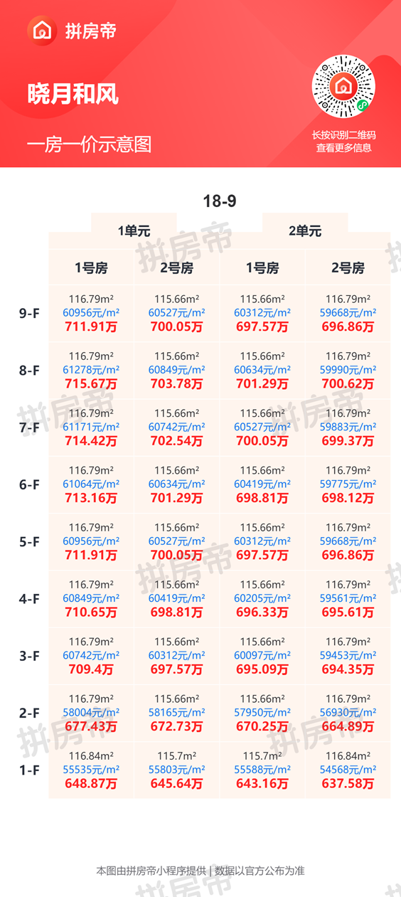 以下是一房一价表