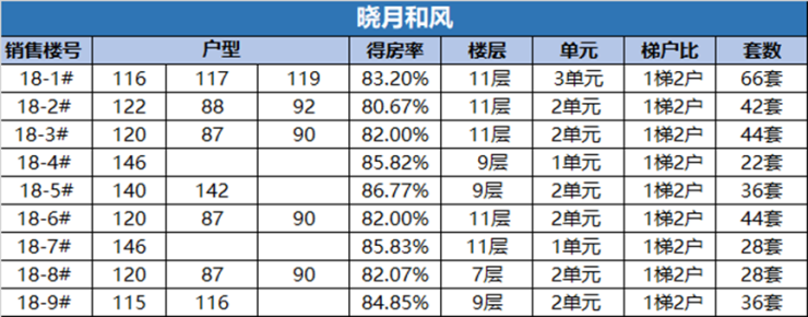 本次预售为18地块的全部9栋楼,得房率在80.67%-86.77%之间,在没有统计赠送的前提下,这个比例相当可以了。