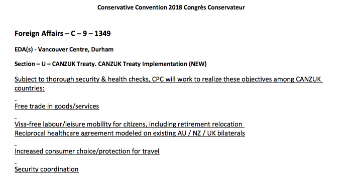 而加拿大较大的在野党——保守党昨天也通过了提案,支持CANZUK(加英澳新四个国家之间公民、贸易自由流动)政策。