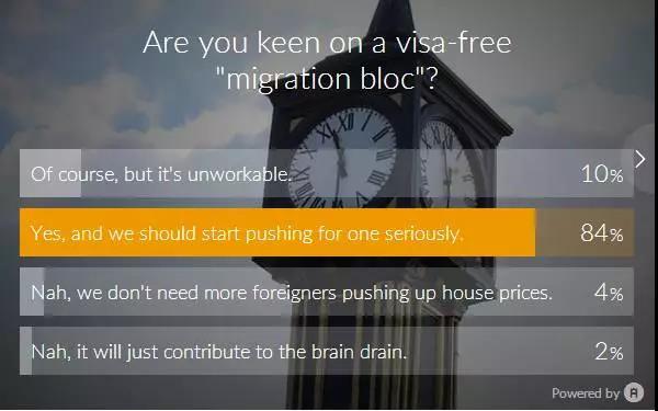 英联邦协会在四个联盟国举行了全民投票支持率显示,84%的被调查者支持这项"签证,移民互相承认"的计划。