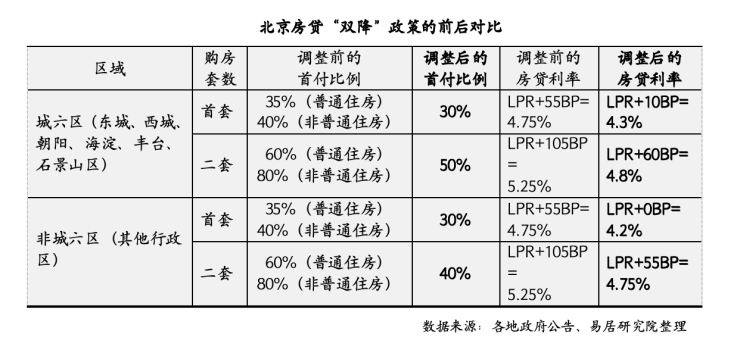 从北京市场的表现来看,新政也带动部分新房销售。按照政策内容,北京降低了首付和房贷利率,同时针对首套和二套、城六区和非城六区做了差异化调整,同时取消了普通住房与非普通住房差异化的首付比例政策。