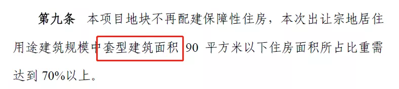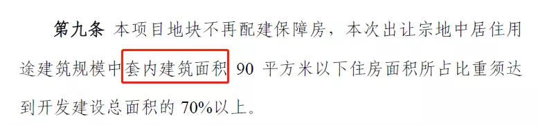 在挂牌文件的第九条中赫然写着,本次出让宗地中居住用途建筑规模中套内建筑面积90 平方米以下住房面积所占比重须达到开发建设总面积的70%以上。
