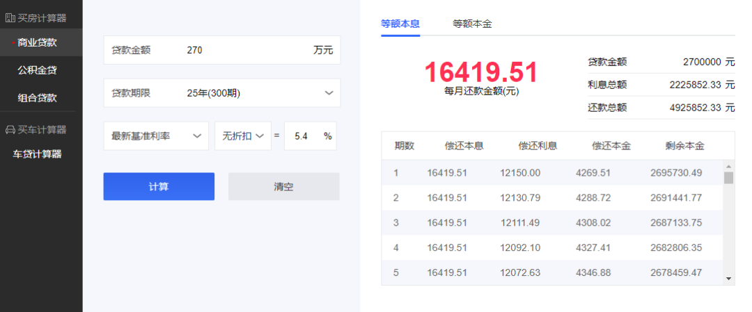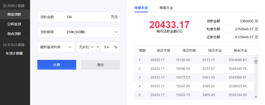 其次,首付和月供多了。原先买90平三居,首付4成也就是180万,月供16419.51元,现在买112平三居或四居,首付则需要224万,月供20433.17元。一字之差,就让首付多出44万,月供多出4000+,每月的负担又重了不少。