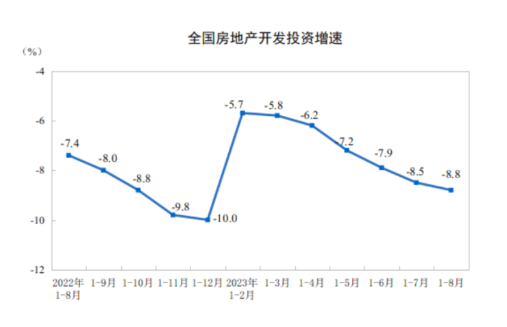 前8个月房地产开发投资同比下降8.8%,住宅待售面积增长19.9%