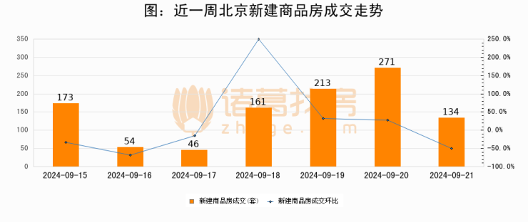【北京成交日报】09月21日新房成交134套、二手房208套;涨价房源304套