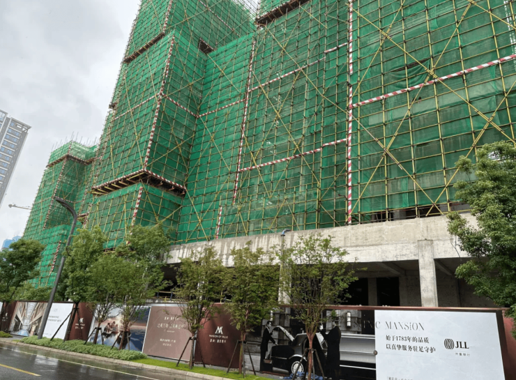 6月24日,每经记者在现场看到,目前整个项目正处于施工状态,西侧就是锦江,距江最近处约50米;对面就是已于去年底交付的远达·麓湖云邸,约百米之外就是“神盘”麓湖生态城的商业配套麓坊中心,目前已在运营。