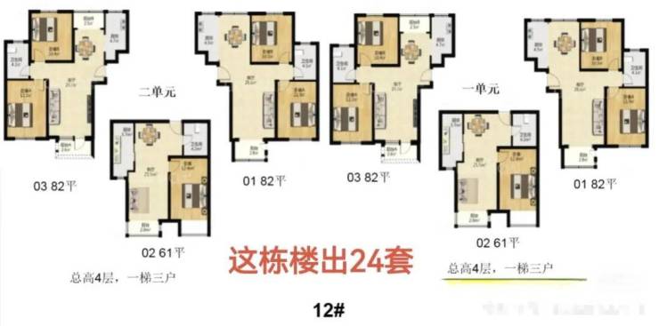 12号楼总高16层,有24套房源,小户型居多;13号楼有128套,总高16层,90平的南北小三居居多,还有88平的南向两居。