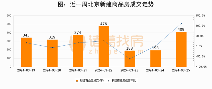 【北京成交日报】03月25日新房成交409套、二手房714套;涨价房源135套