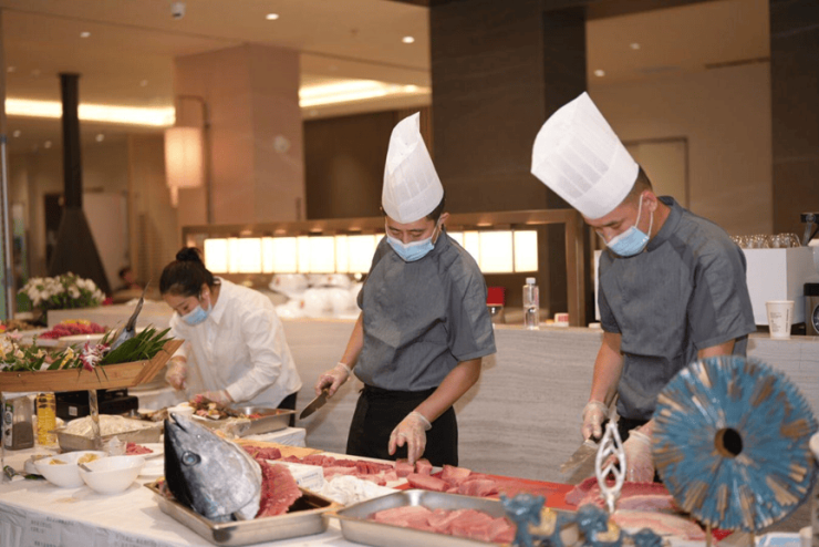 从深海远道而来的顶级珍馐金枪鱼,在经验丰富的日料主厨的料理之下,让现场嘉宾第一时间品尝从深海到舌尖的极致鲜美。开鱼宴现场,大厨详尽深海料理文化,宾朋们推杯换盏,品赏人间至味,臻享温情时光。