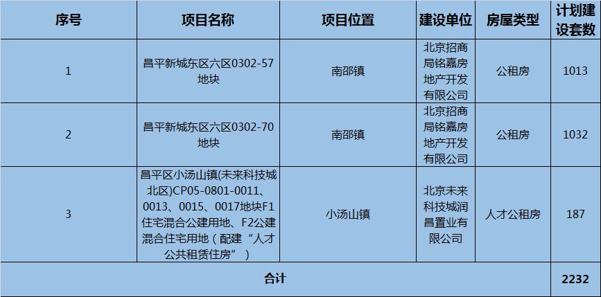 昌平保障性住房建设项目明细表出炉,全区新增2232套公租房