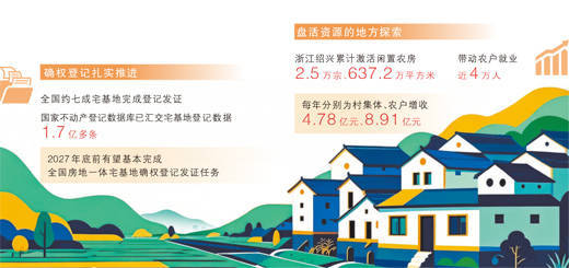“扎实做好农村宅基地及房屋确权登记是深化农村土地制度改革、全面推进乡村振兴的重要基础。”胡善顺介绍,全国121个宅基地制度改革试点地区和350个农村集体经营性建设用地入市试点地区,已基本完成房地一体宅基地确权登记。当前,自然资源部正联合相关部门在山东等地先行适用宅基地及房屋历史遗留问题处理政策,加快形成制度供给,化解疑难问题。按计划,2027年底前有望基本完成全国房地一体宅基地确权登记发证任务。