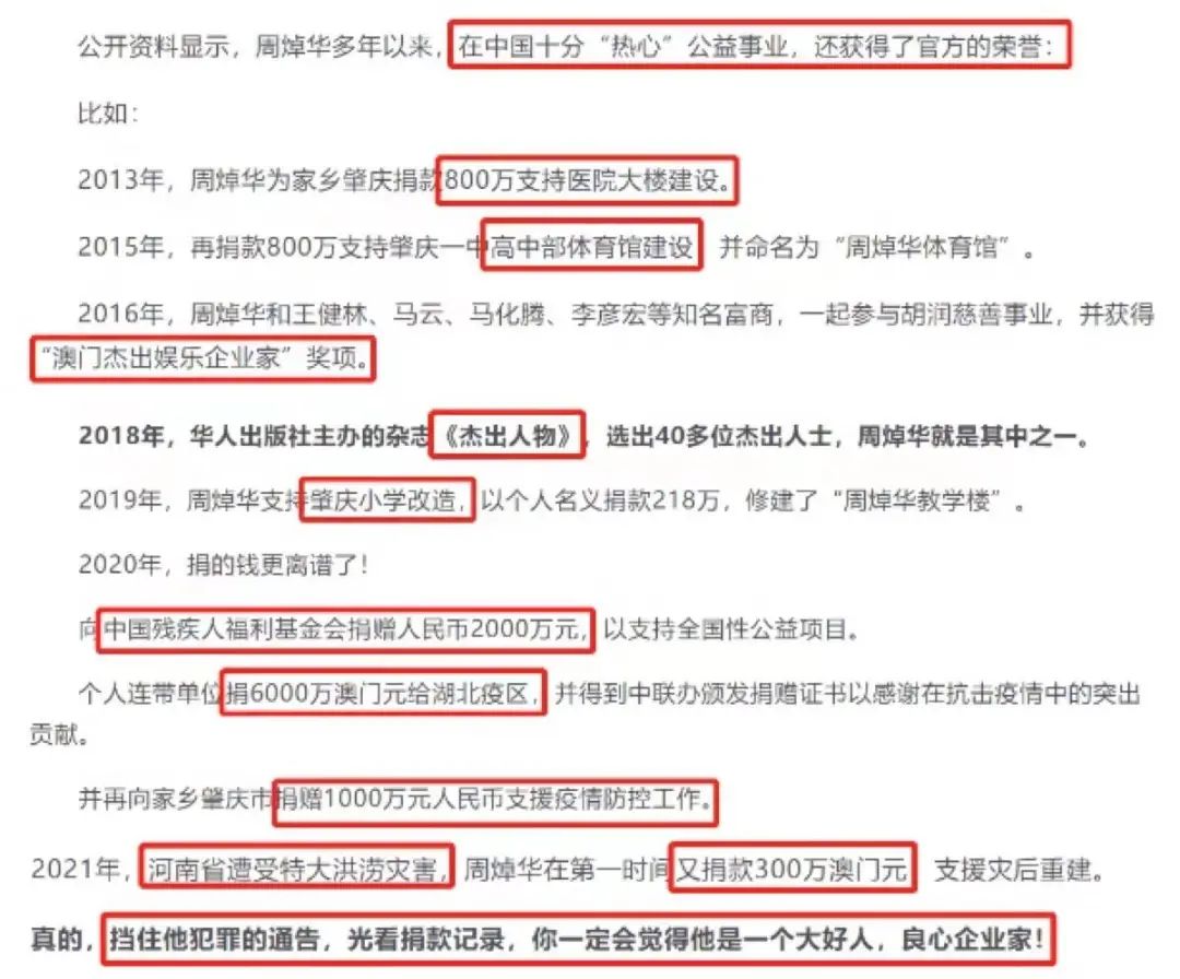 逮捕之前,洗米华更是昔日的“慈善大使”,俨然一副“杰出企业家”的样子。