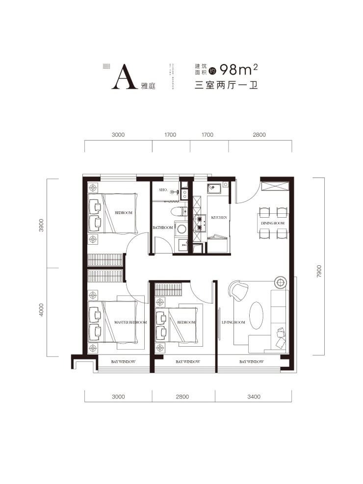 纯粹的三居户型,营造了纯粹的社区氛围;户型方正通透,皆是南向三面宽、全尺寸舒阔空间格局,双阳光卧室,确保了良好的居住环境。