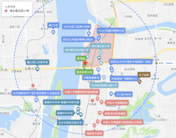 本次土拍中起始价最高的地块编号为[2024]长沙市061号地块,地块位于天心区省府板块,北临友谊路、南临新韶路、西临新姚路。土地出让面积88243.76平方米,规划建筑面积247082.53平方米,另有中小学用地面积15658.69平方米,中小学用地面积不计入出让面积。用地性质为二类居住用地/中小学用地(R2/A33),容积率方面,居住用地S05-B03-03≤2.8,中小学用地S05-B03-05≤1.2。