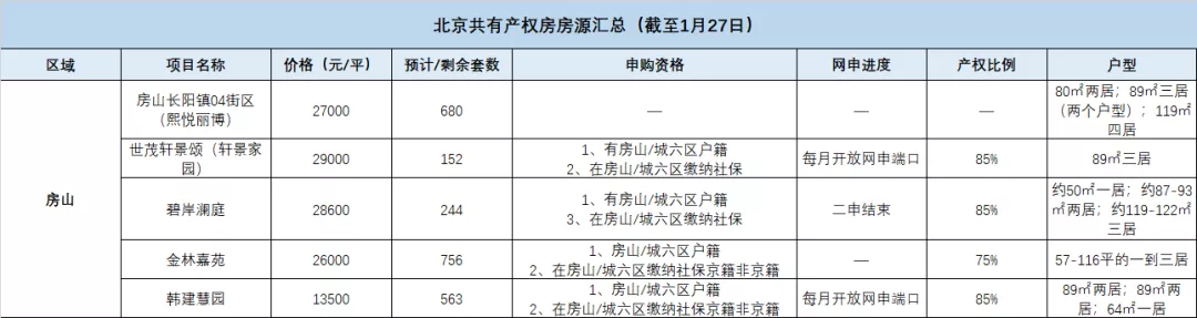 05 房山房山目前一共有5个共产房项目,其中房山长阳的熙悦丽博还未网申过,世茂轩景颂和韩建慧园转为了周期性销售,每月开放网申端口,碧岸澜庭二申之后还有200多套房源,估计还会开放三申。