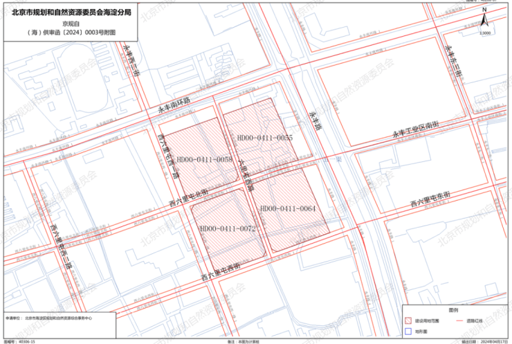 海淀区西北旺镇永丰产业基地(新)0411街区HD00-0411-0055、0058、0064、0072地块二类城镇住宅用地、商业服务业用地/地面公共交通场站用地。