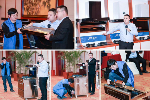 威可多电器有强品牌更有好产品。威可多电器现场发布了蒸烤消一体集成灶,蒸箱款集成灶及消毒柜集成灶等多种款式,李总更是现场拆解威可多集成灶让大家看到集成灶内部扎实的做工,威可多家人们亲身感受到威可多集成灶的产品魅力,纷纷与在场的工作人员交流并亲自体验演示,秒吸油烟、5.2kW大火力、蒸烤消一体功能多样的集成灶令在场的所有威可多家人们叹为观止。