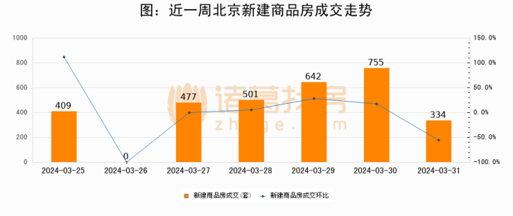 【北京成交日报】03月31日新房成交334套、二手房474套;涨价房源189套