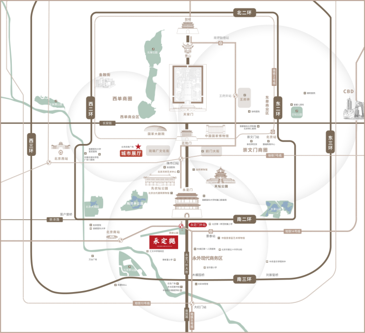 项目的具体位置在南二环边,属于东城区,距二环约800米,距永定门约1公里,距天坛约2公里,距天安门约5公里。