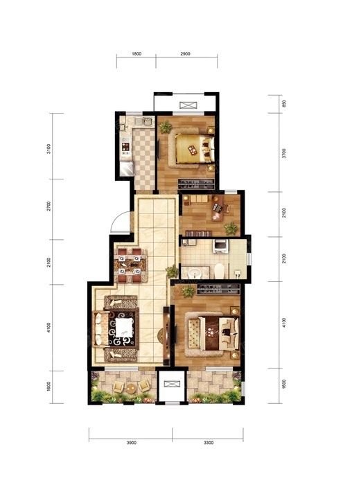 2、价格:户型为90-105平三居墅质洋房,均价45500元/㎡,总价400-500万/套,首付140万起,一梯两户,户户南北通透,1.5低容积率,舒适度高。