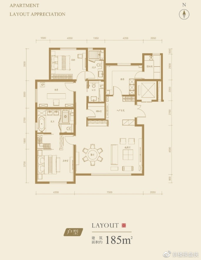 185m²客厅餐厅相连,空间开阔,卧室南向主卧,附带独立衣帽间及卫生间,私密性良好,厨房明厨,通风效果良好7.5米面宽客厅,主次卧全套房设计,多功能室+储藏室+家政间,空间灵活且保证家庭收纳功能充裕。