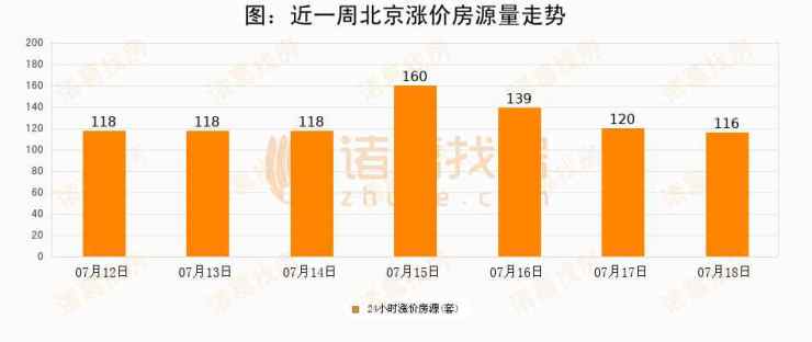 根据诸葛找房数据显示,北京24小时涨价房源量为116套,较07月17日减少4套,环比下降3.3%。与此同时,涨价房源占比小幅回落,对于购房者来说是一个入市窗口期,购房者可抓住时机入市。