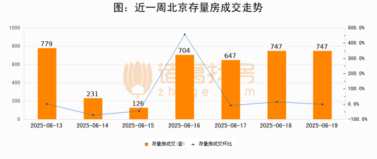 从存量房来看,2025年06月19日北京存量房单日成交747套,比昨日持平。。从近一周存量房成交来看,北京存量房日均成交套数为568套,06月19日单日成交747套,高于近一周平均水平31.5%。