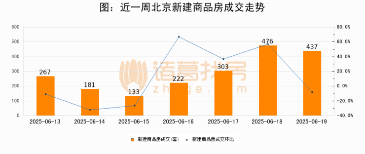 【北京成交日报】06月19日新房成交437套、二手房747套;涨价房源75套