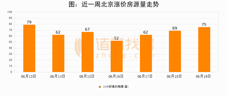 根据诸葛找房数据显示,北京24小时涨价房源量为75套,较06月18日增加6套,环比上涨8.7%。与此同时,涨价房源占比小幅扩大,业主信心有所提升。