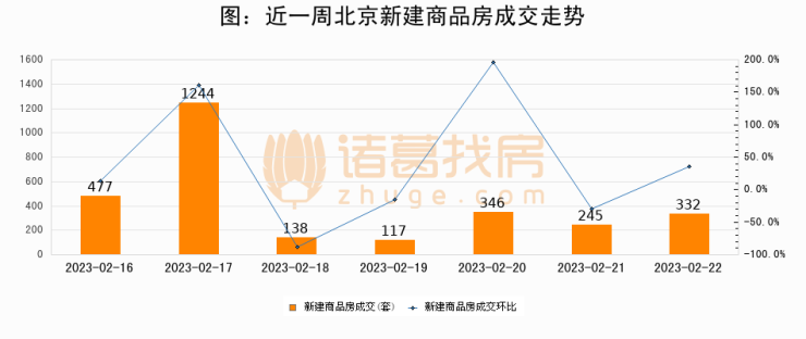 【北京成交日报】02月22日新房成交332套、二手房912套;涨价房源394套
