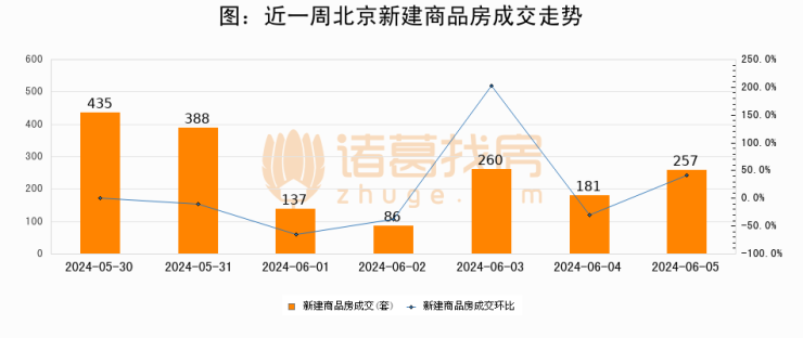 【北京成交日报】06月05日新房成交257套、二手房638套;涨价房源250套