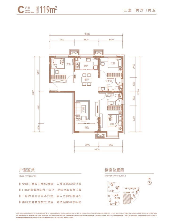 户型设计动线合理,三房分布互不打扰,主卧套房,私密性更高。