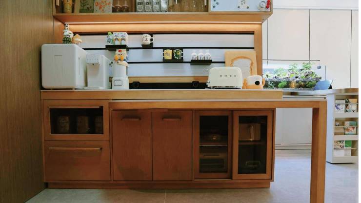 2. 母婴友好设计:为宝宝量身定制的小推车,挂安抚玩偶,收纳故事书,母婴护理书籍;餐桌、餐边柜为宝宝预留专属辅食空间,让新手宝妈“零压力育儿“;