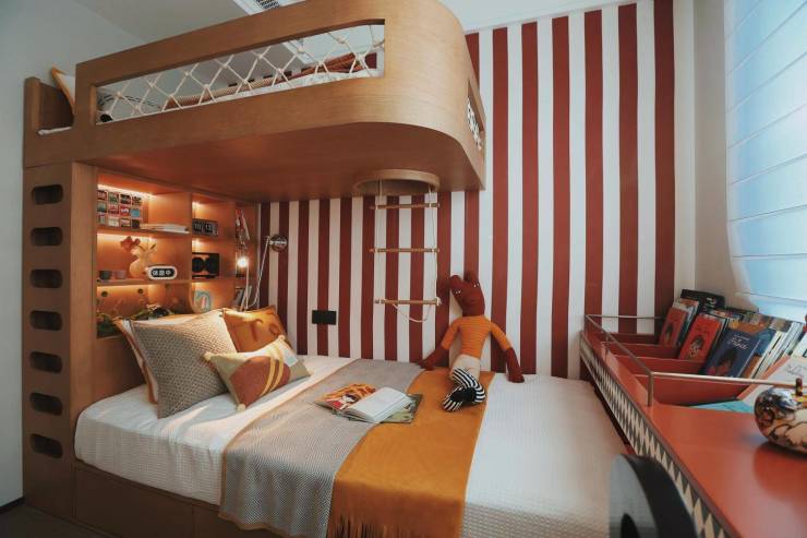 3. 垂直生长空间:依托3米层高,北向儿童房采用上下床与一体式书桌设计,释放立体空间,满足二孩家庭分龄居住需求,同时预留灵活改造空间,适配学龄期至青春期的功能迭代;