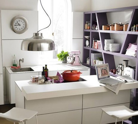 小厨房多显凌乱,主要是因为各种餐具无处摆放,堆积台面所致。