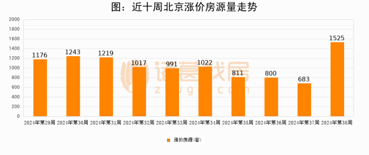 从调价房源来看,第38周北京涨价房源1525套,较上周上涨123.3%。与此同时,38周涨价房源占比提升0.78个百分点,业主信心持续恢复。