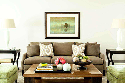 家居饰品的摆放,也要注意技巧。将一些家居饰品组合在一起,使它成为视觉焦点的一部分,对称平衡感很重要。旁边有大型家具时,排列的顺序应该由高到低陈列,以避免视觉上出现不协调感。或是保持两个饰品的重心一致,例如,将两个样式相同的灯具并列、两个色泽花样相同的抱枕并排,能制造和谐的韵律感,给人祥和温馨的感受。