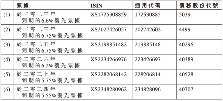 在原则上所协定建议的主要条款包括:预期建议重组将处理现有票据以及本公司所借入受香港法例规管的美元及港元双币可转让定期贷款融资(经修订及补充)(连同现有票据及现有银团贷款统称为“现有债务工具”)。截至2023年12月31日,现有票据的未偿还本金总额为26.5亿美元,现有银团贷款的未偿还本金额为683.17百万港元(约87.59百万美元)及162.76百万美元。此外,预期将于香港及/或其他适用司法权区通过协议安排实施建议重组。