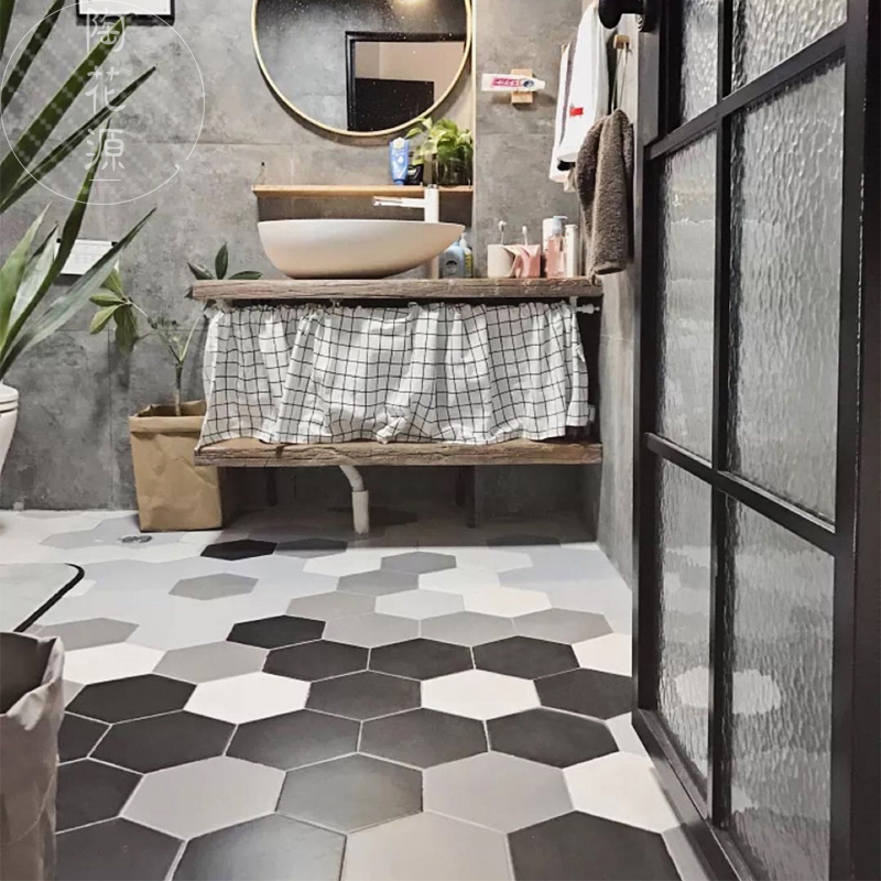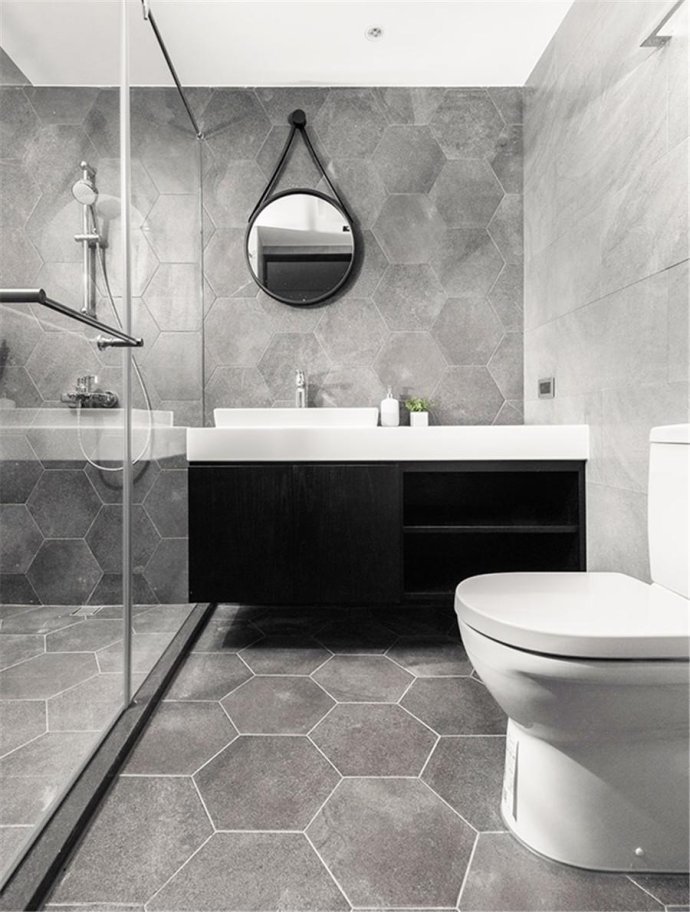北欧风格、工业风的卫生间采用六角砖,立体感很强,不会单调尽显时尚。