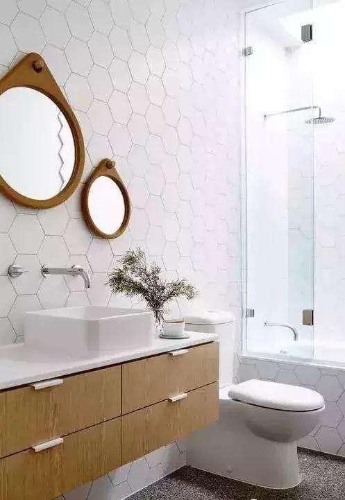 卫生间瓷砖还在用老式的贴法,已经out 啦!卫生间瓷砖贴什么好看?选择瓷砖时要同时考虑到颜色、大小、方向三个不同维度。六角砖不仅能让卫生间更加美观,而且还会让空间在视觉上变大。
