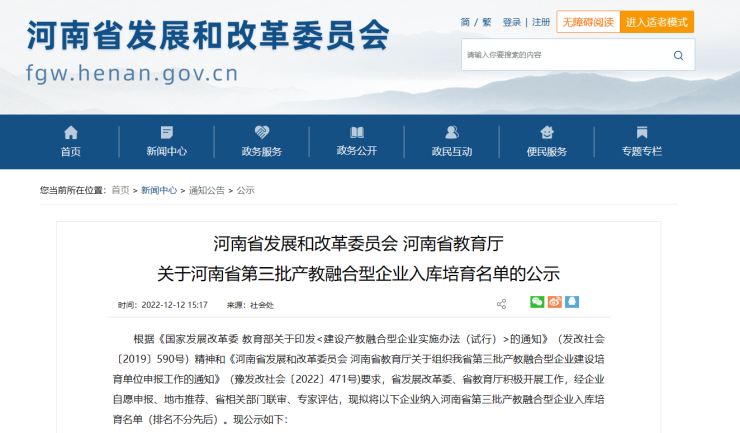 为积极推动校企合作、深化产教融合,近日,河南省发展改革委、省教育厅公示了河南省第三批产教融合型企业入库培育名单,经企业自愿申报、地市推荐以及省相关部门联审、专家评估,贝壳获批河南省第三批产教融合型企业。